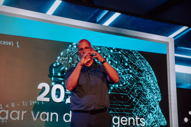Als dagvoorzitter wist Liesbeth alle onderdelen van het event op inspirerende wijze met elkaar te verbinden. Vanuit haar ervaring als oprichter van LAGOM Consultancy en mede-oprichter van The AI Playground bracht ze een scherpe visie op AI mee. Met deze visie vormde ze de rode draad van de dag, waarmee ze sprekers en deelnemers hielp om AI in een breder perspectief te plaatsen.